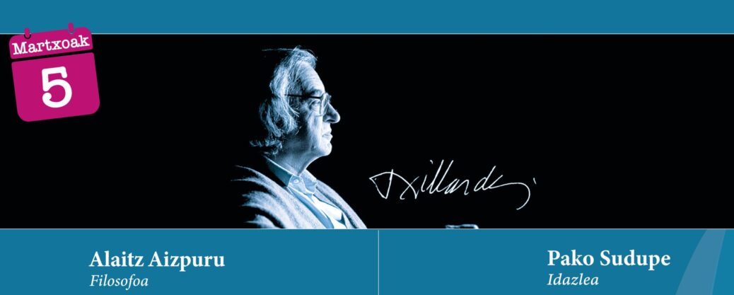 Noiz: Martxoaren 5a, osteguna, 19:00 Non: Euskaltzaindiako areto nagusian, Bilboko Plaza Barrian Hitzaldia Gaurkoan, Txilardegiren “Leturiaren egunkari ezkutua” liburuaren inguruko hitzaldia izango dugu Alaitz Aizpuru eta Pako Suduperen esku.   Alaitz Aizpuru Azpeitian jaioa, 1983an. Euskal filosofoa da. Euskal Herriko Unibertsitatean lizentziatu zen. 56ko belaunaldian aditua, bereziki Joxe Azurmendiren...