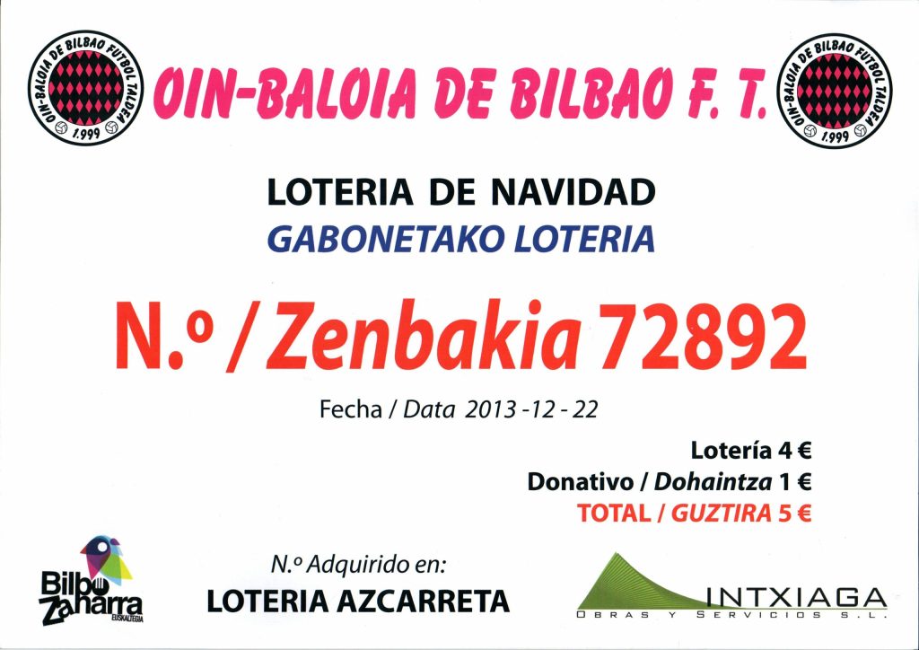 Bilbo Zaharra euskaltegiak gabonetako loteria erosteko aukera ematen dizue. Jakingo duzuenez, Bilbo Zaharra euskaltegiak, Oin-Baloia futbol taldeko babezle ofiziala da, eta aurten ere, haien loteria izango duzu salgai euskaltegiko bulegoan. Anima zaitezte papeletatxo bat erosten! Aurten fijo tokatzen dela!