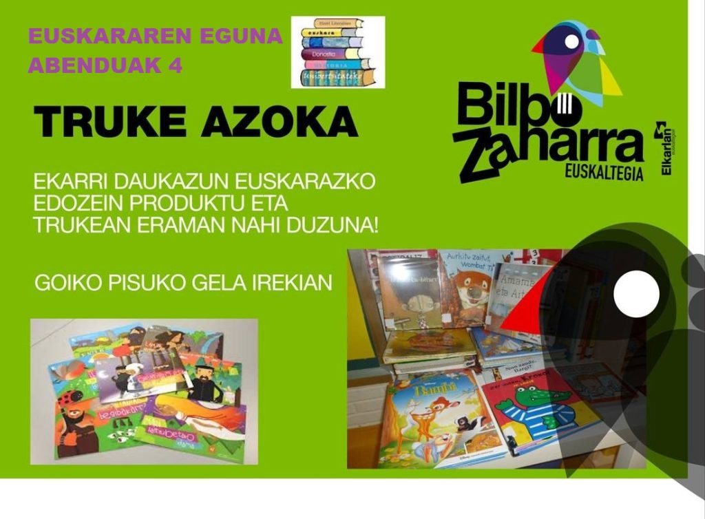 Este año, por el gran éxito que tuvo el año pasado, para celebrar el Día Internacional del Euskera, el euskaltegi va a organizar una feria del trueque durante el día 3 de diciembre de libros, revistas, discos, etc…