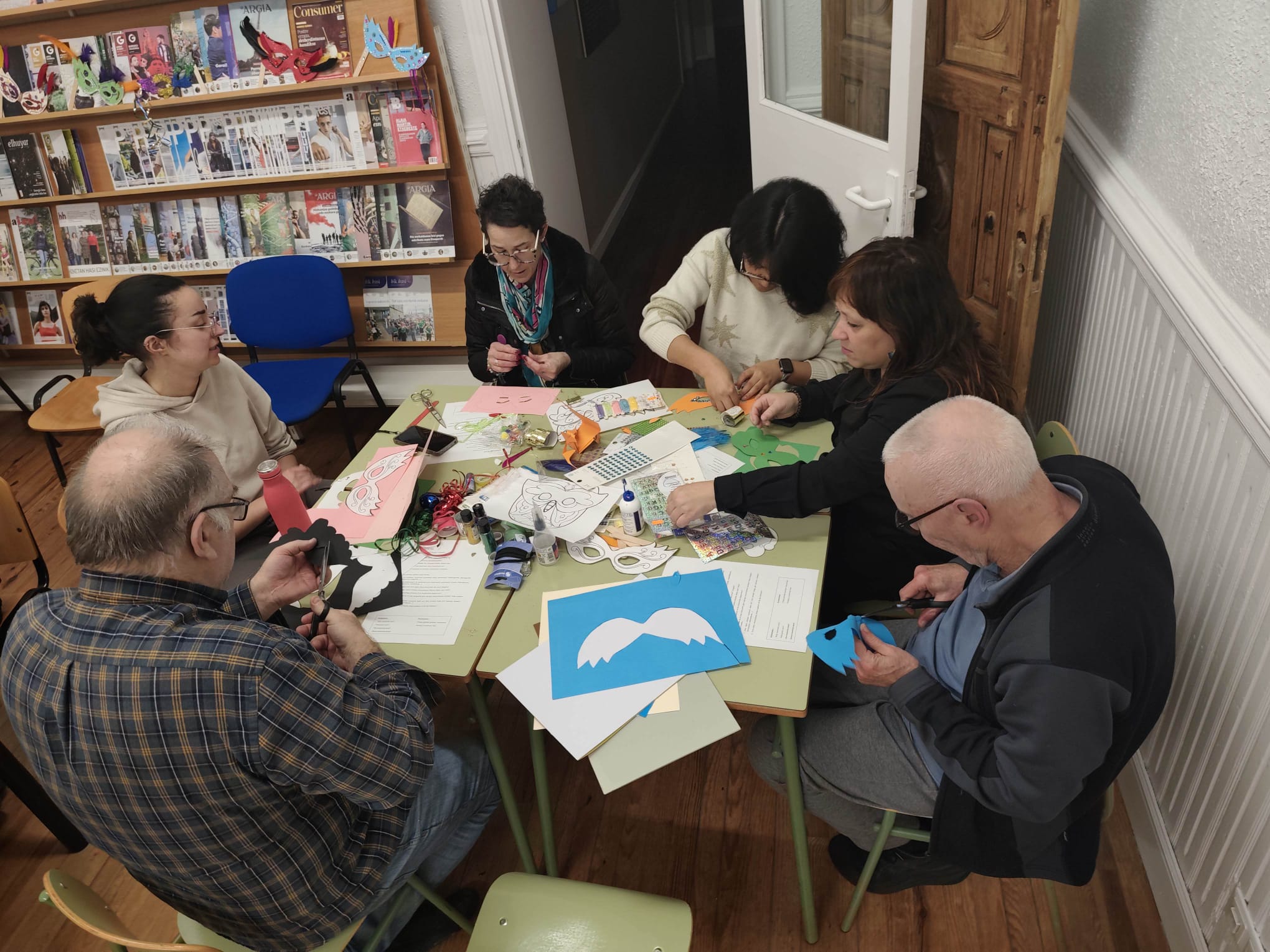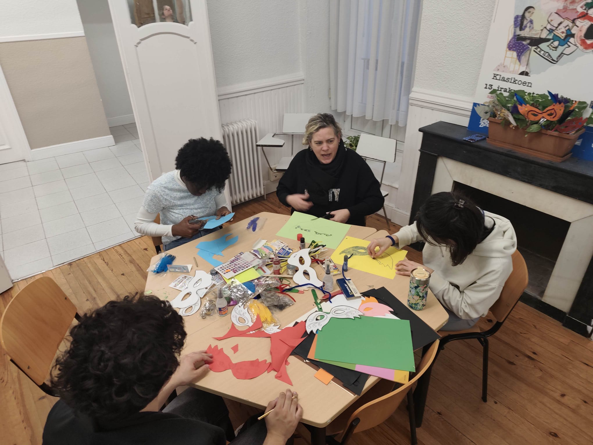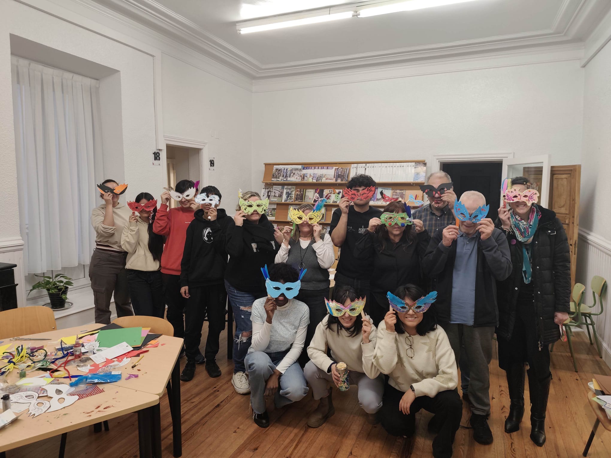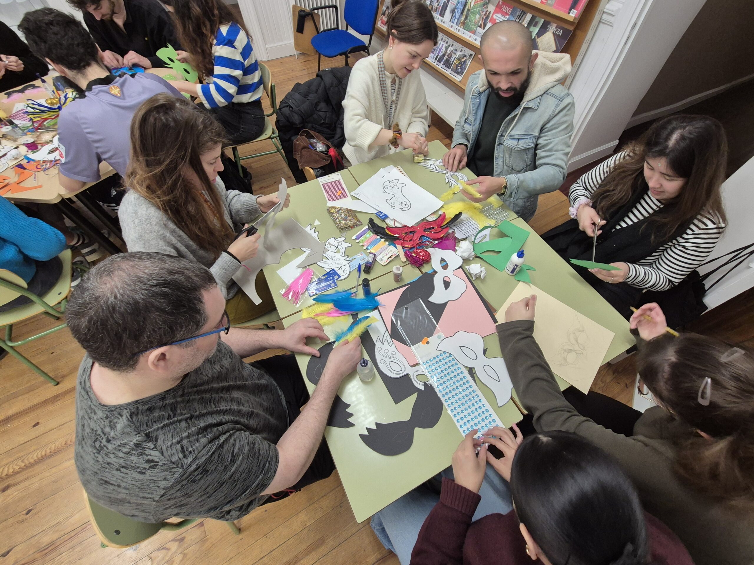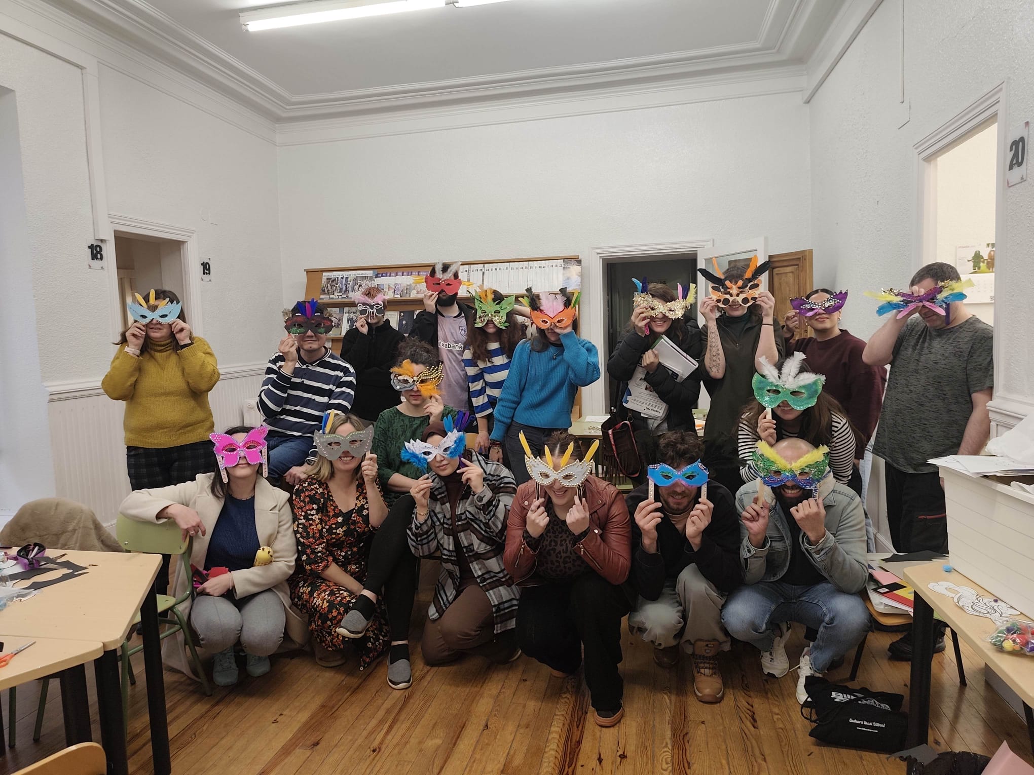 Ihauteriak bueltan ditugu, eta jai giro horretan sartzeko, atzo maskara tailerra egin genuen euskaltegian. Gure bulegaria Nerearen gidapean, material desberdinak erabilita, eta beste geletako ikaskideen laguntzarekin kreatibitateari askatasuna eman genion. Zelak maskara ederrak! Asteburu honetan erabiltzeko prest!
